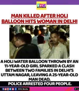 A 25-year-old man, Tarun Kumar, was allegedly killed after a dispute between two families escalated in Delhi’s Uttam Nagar during Holi celebrations.