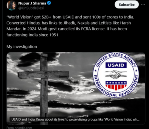 Exclusive – Church ‘World Vision’ got billions from USAID, sent crores to India for 70 years: Conversion, links to Jihadis, Naxals, Harsh Mander and action by Modi govt