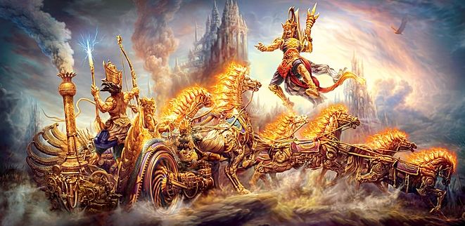 Yet the duality between the Devas and Asuras is not absolute and should not be confused with any simplistic good and evil. The Asuras represent elemental energies and vital passions, the forces of rajas (rajoguna), which have their place in the cosmic order.