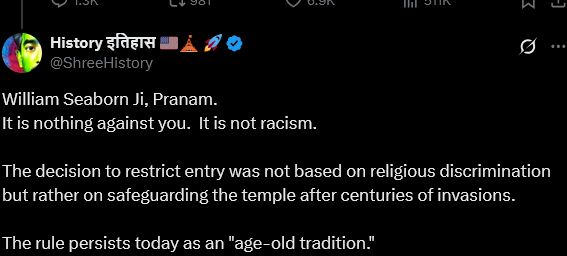 But then the excuses of no entry get worse when it’s pointed out by another hindoo enlightened expert that it’s not racism or any discrimination, but the rules came into place because of the invasions by Islamic armies through history who looted the temples.